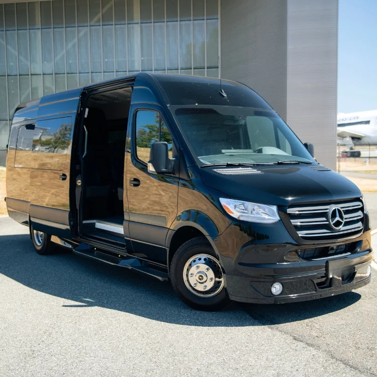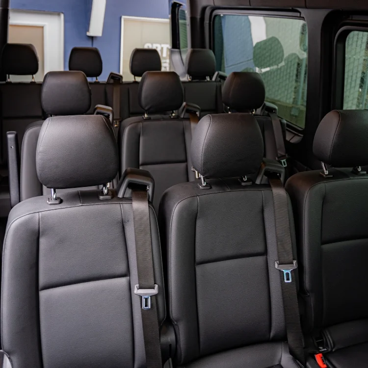 Perfect for small groups who want to travel together in comfort. With spacious interiors, leather seating, and entertainment features, this Sprinter is great for corporate outings, family travel, and group events.
